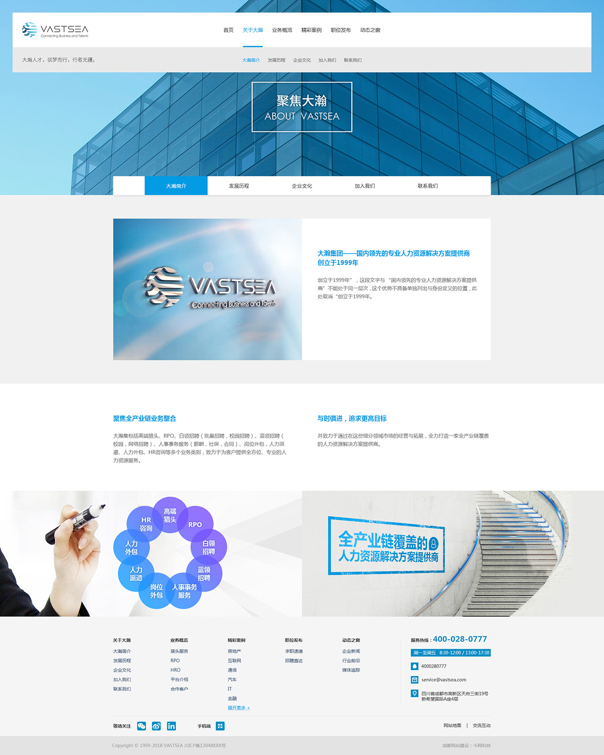 大瀚人力資源集團是一站式人力資源解決方案提供商。大瀚于1999年創(chuàng)立,創(chuàng)立之初以高端獵頭業(yè)務(wù)進入市場,今天已發(fā)展成為人力資源服務(wù)領(lǐng)域內(nèi)全產(chǎn)業(yè)鏈覆蓋的綜合服務(wù)商。我們?yōu)?2大行業(yè)提供高端獵頭服務(wù),同時還提供人力資源服務(wù)外包、招聘流程外包、人力資源綜合咨詢、互聯(lián)網(wǎng)平臺等多元化人力資源服務(wù)。迄今我們累積為包括世界500強企業(yè)在內(nèi)的超5000家大型上市公司及擬上市公司提供服務(wù),在業(yè)界享有盛譽。