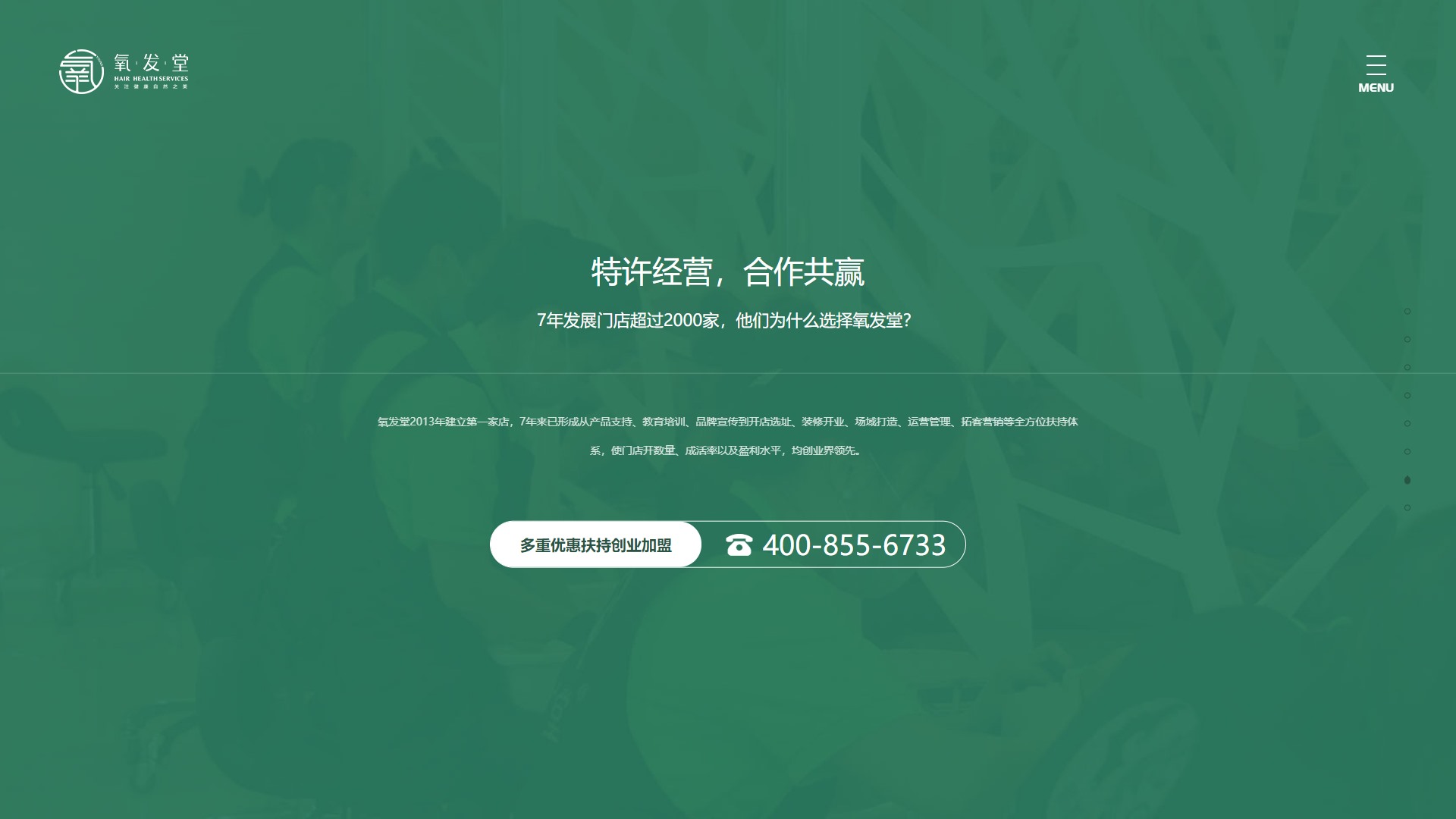 2013年,氧發(fā)堂以體驗式營銷模式進行市場推廣,旗下運營的氧發(fā)堂植物染發(fā)連鎖店,截至目前,在全國已超過1100家連鎖店,遍布22個省市自治區(qū),從業(yè)人員超過10000人,服務顧客超過2500萬人,顧客好評率高達98%。現(xiàn)在,隨著顧客對發(fā)健康的日益重視和對氧發(fā)堂品牌產(chǎn)品與服務的認可,氧發(fā)堂正平均每天以兩家店的開業(yè)速度快速發(fā)展······
