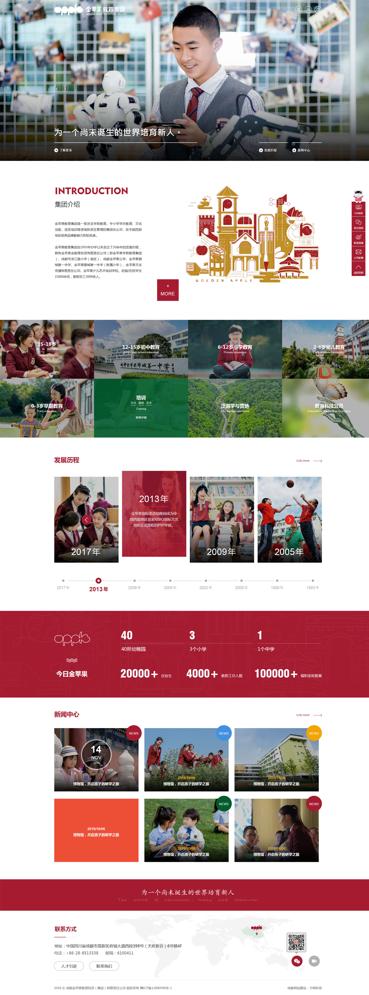 金蘋果教育集團是一家涉及學前教育、中小學學歷教育、文化出版、語言培訓等領域投資及管理的集團化公司,在中國西部地區極具品牌影響力和知名度。