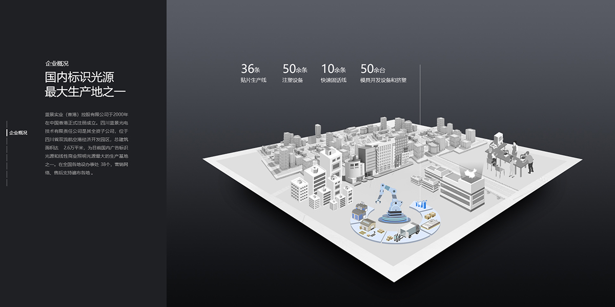 四川藍景光電位于四川省雙流航空港經濟開發園區,總建筑面積達 4萬平米,為目前國內廣告標識光源和線性商業照明光源最大的生產基地之一。藍景擁有業內獨特的全產品鏈生產體系,覆蓋從LED標識光源到照明燈具的全品類,在這里,您能找到智能照明整體解決方案。藍景追求極致光體驗,經過多年精研智作,開發出的高質量產品取得100余項專利,并榮獲國家高新技術企業認證,四川省企業技術中心稱號。