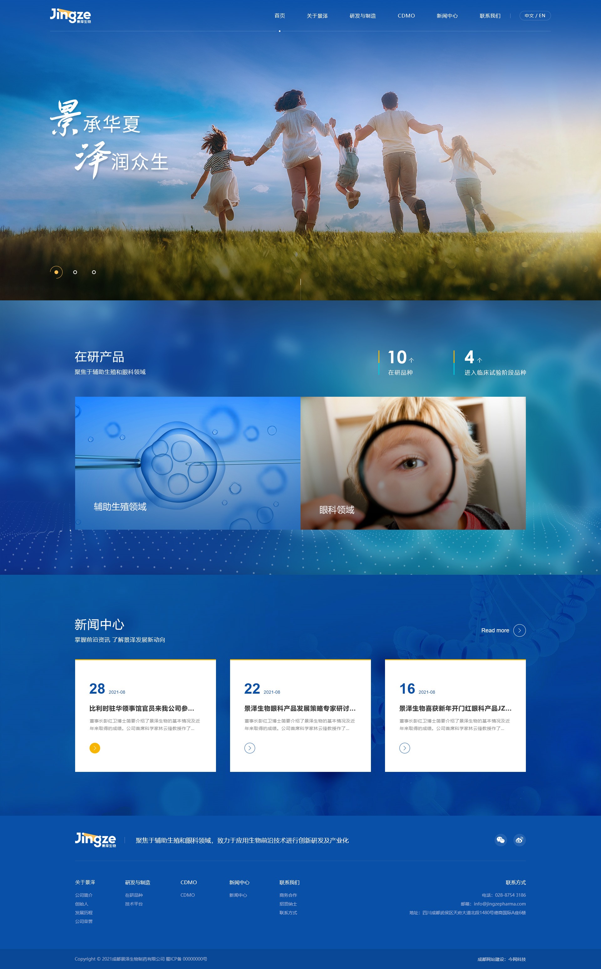 景澤生物核心團隊擁有連續創業成功和多項生物藥研發、生產、商業化的經驗。公司聚焦于輔助生殖和眼科領域,已布局了豐富的產品研發管線,目前在研項目十余個,其中3個產品進入臨床試驗階段(最快的已完成Ⅲ期臨床試驗入組),2個產品正在申報IND。