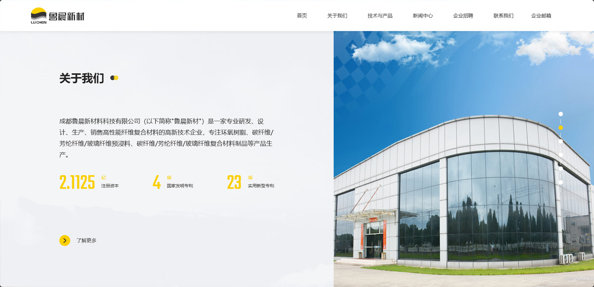 成都魯晨新材料科技有限公司是一家專業研發、設計、生產、銷售高性能纖維復合材料的高新技術企業,專注環氧樹脂、碳纖維/芳綸纖維/玻璃纖維預浸料、碳纖維/芳綸纖維/玻璃纖維復合材料制品等產品生產。