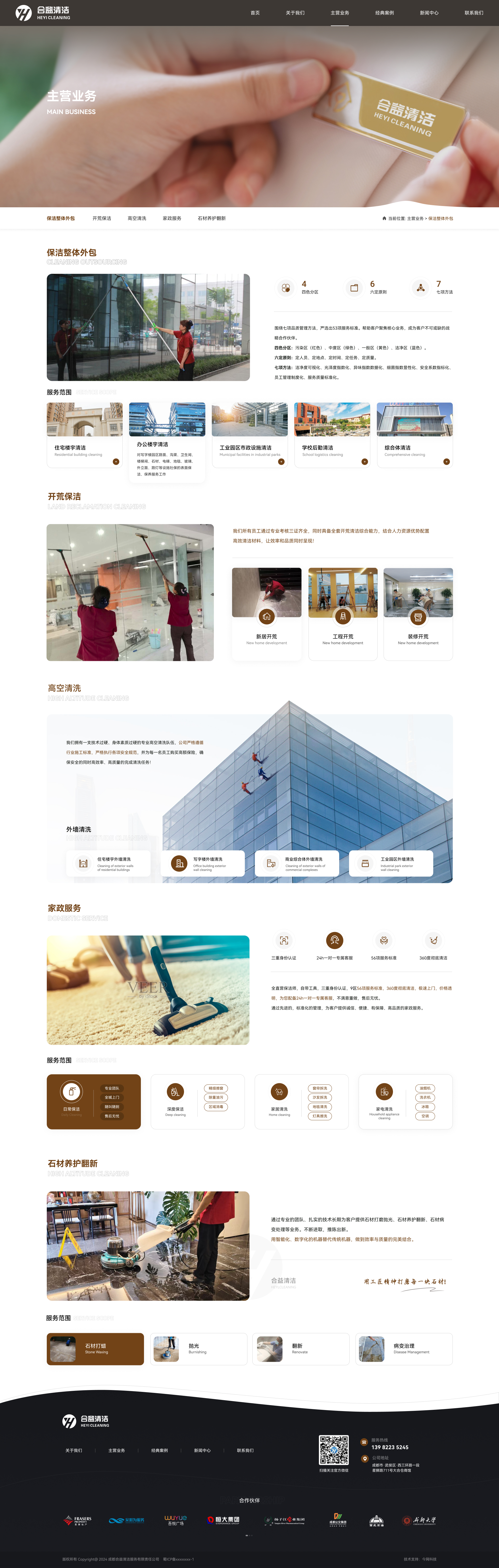 成都合益清潔服務有限責任公司于 2014 年 12 月正式成立,是一家集物業保潔、道路清潔、工程開荒、外墻清洗、石材養護、家政服務等于一體的多功能專業室內外清潔環保公司。公司成立至今憑借優良的清潔質量和嚴格的督查管理已承接了居民住宅、高檔別墅、酒店、商場、寫字樓、醫院、學校、產業園區、市政道路等多種類型的清潔服務,服務面積超過1500 萬平方米。