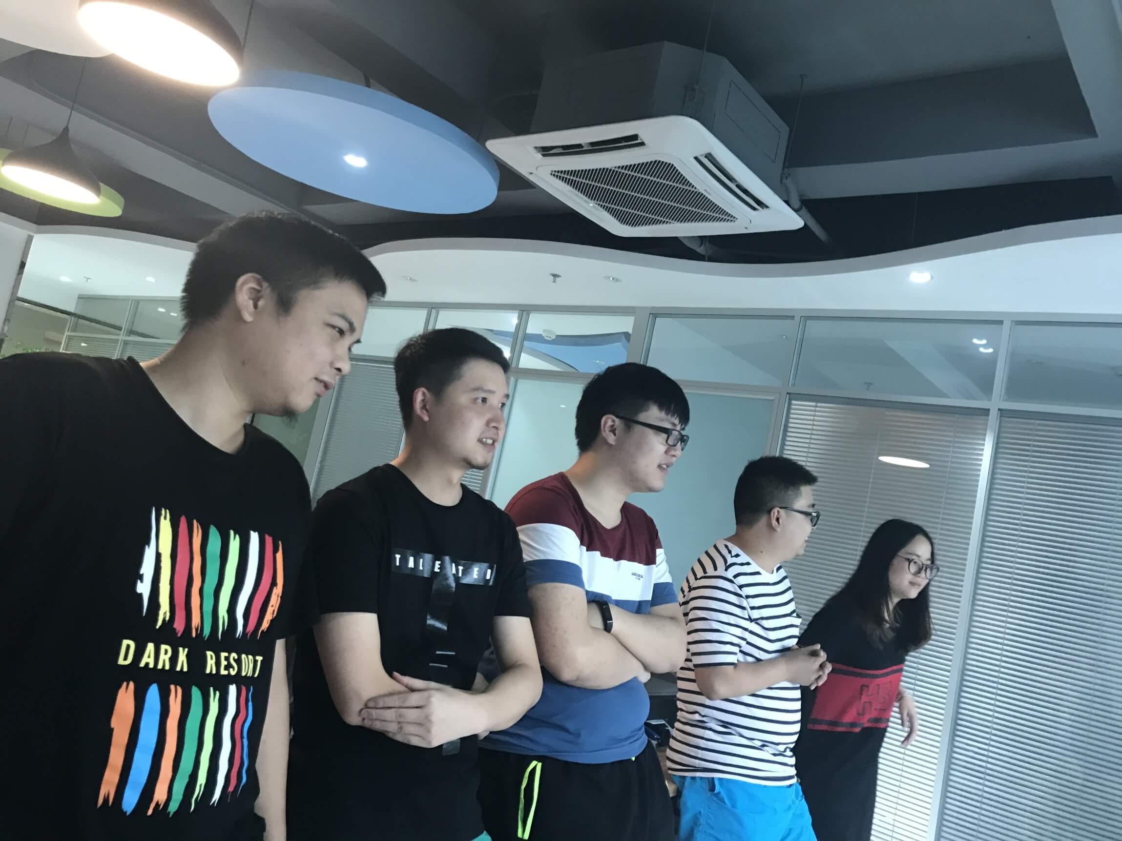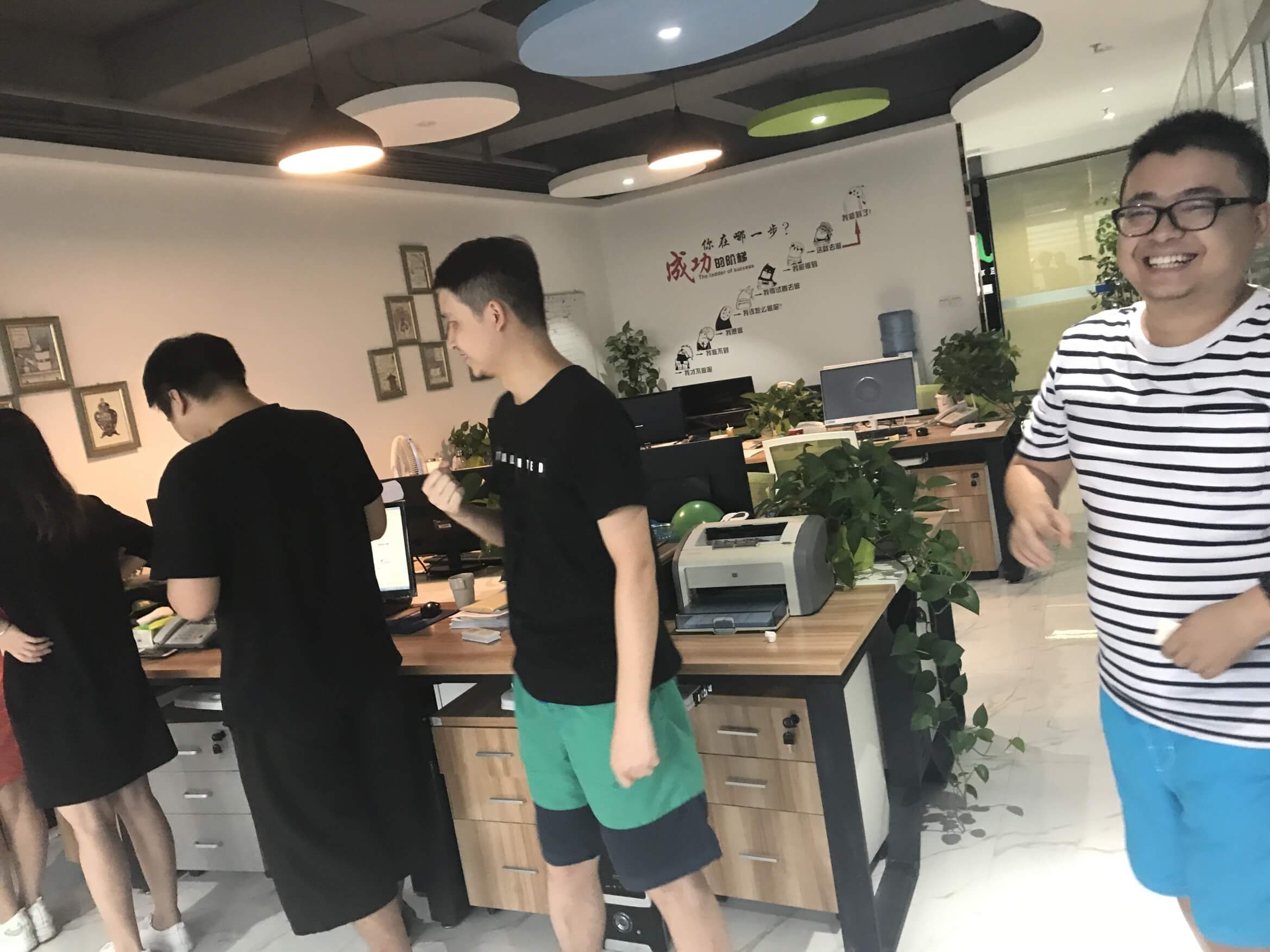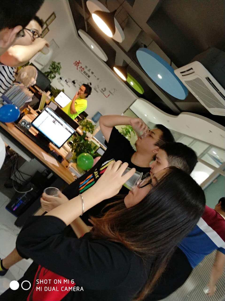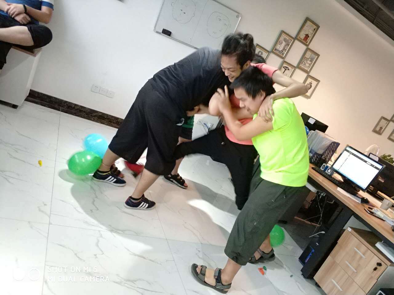 時間過得相當的快,不經意就來到了最后一個環節,踩氣球。兩隊每兩個成員綁上氣球,相互對抗,踩爆他的球~~~噢?。。⌒【幩坪蹩吹搅艘粓鲅晷蕊L。