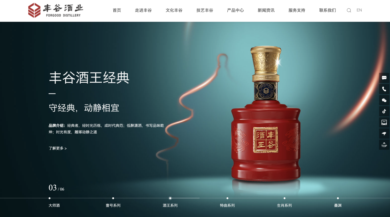 本次豐谷酒業(yè)官網(wǎng)項目,今網(wǎng)團隊從客戶需求出發(fā),深挖企業(yè)文化及品牌理念,多次溝通,全面梳理網(wǎng)站架構。以“走進豐谷、文化豐谷、技藝豐谷、產品中心、新聞資訊、服務支持”為重點欄目,多形式呈現(xiàn)、多終端適配,迎合當代移動互聯(lián)網(wǎng)時代用戶的審美習慣及瀏覽習慣。
